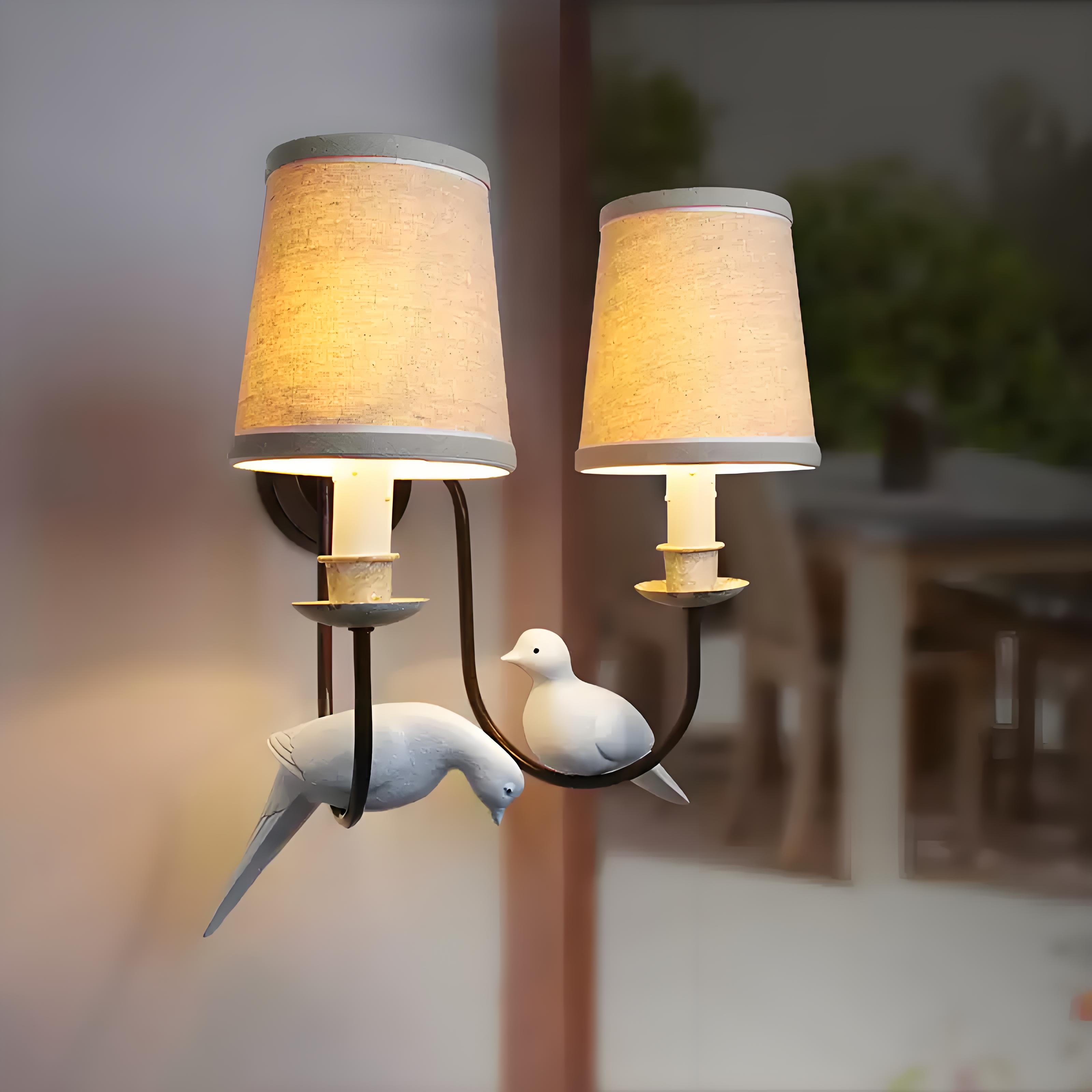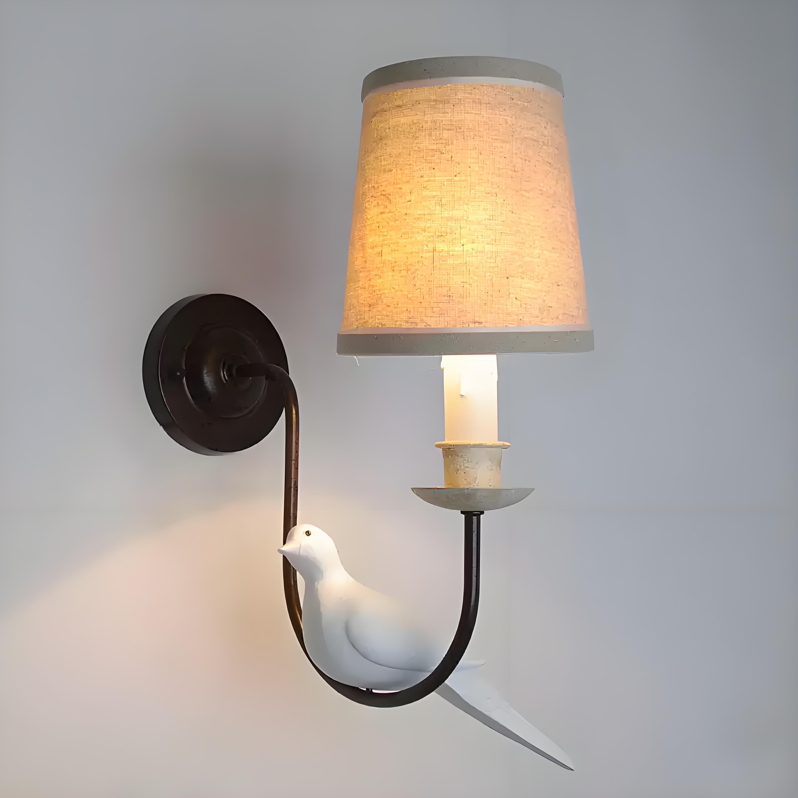 - The inspiration for this pigeon wall lamp comes from pigeons, the messengers of peace. The elegantly – shaped white pigeon perches on the lamp arm, symbolizing tranquility and harmony. Warm light filters softly through the fabric lampshade, as if draping a cozy veil over your living space, creating a peaceful haven for your soul amidst the hustle and bustle.